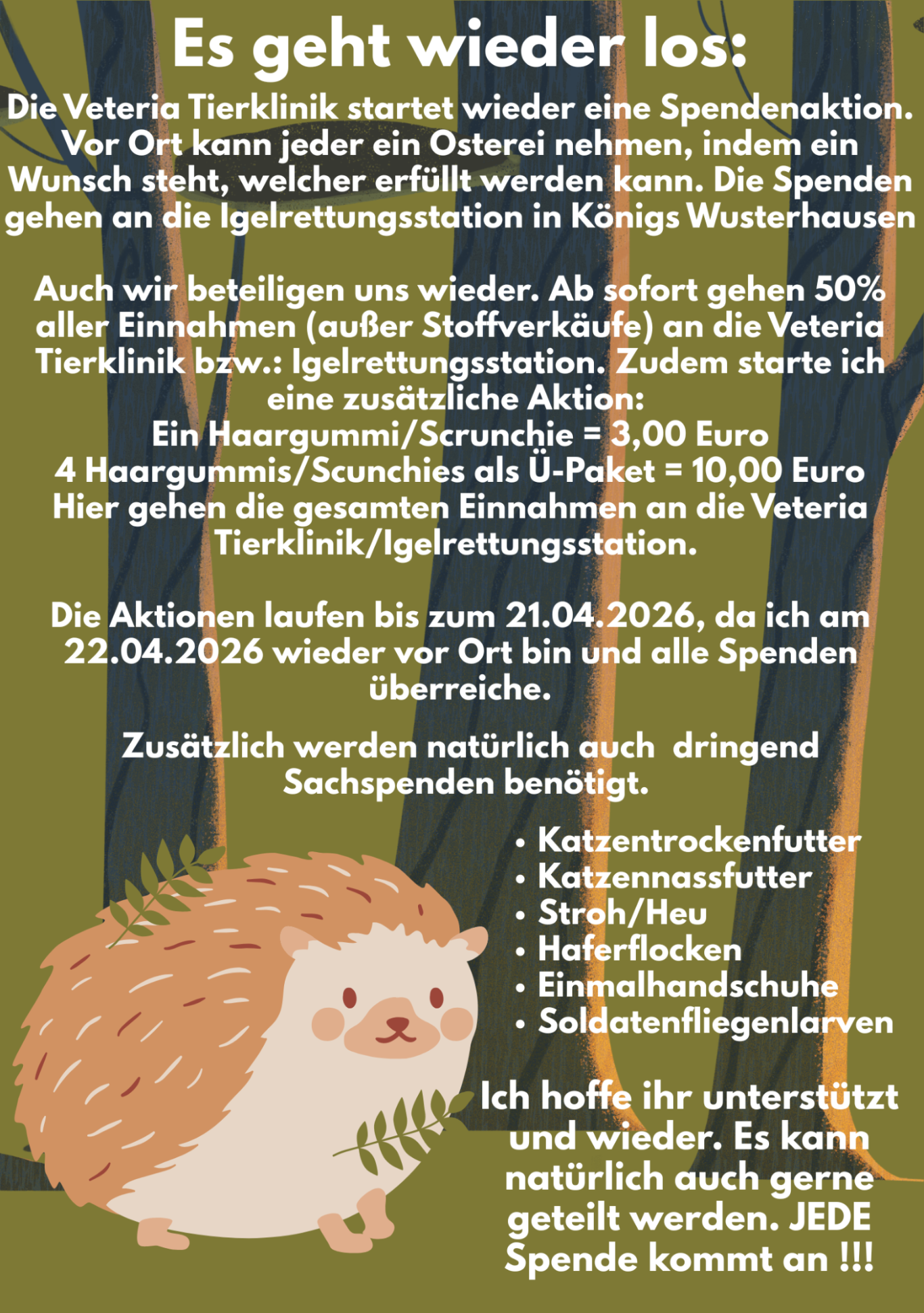 Alle Bestellungen bis 31.03.2026 werden sofort nach Zahlungseingang versendet. Die letzten Bestellungen gehen am 01.04.2026 raus. Alle Bestellungen ab 02.04.2026 werden erst nach dem Urlaub, ab 13.04.2026, wieder bearbeitet und versendet.